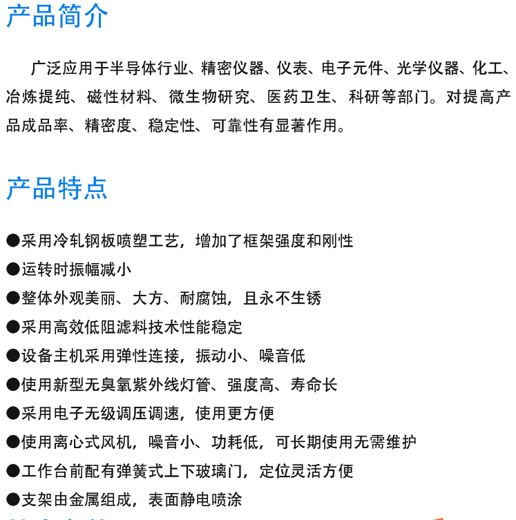 凈化工作臺是造就局部高潔凈度空氣環境的設備,氣流為水平、垂直層流兩種形式。它廣泛應用于半導體工業,精密儀器、儀表、電子元件、光學儀器、化工、冶煉提純、磁性材料、微生物研究、醫藥衛生、科研等部門。對提高產品成品率、精密度、穩定性、可靠性有顯著作用。