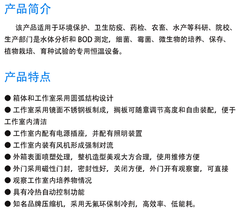 ●外箱門具有加熱功能,門溫跟隨箱溫而略高于箱溫,可有效防止玻璃門產生冷凝水,便于觀察實驗過程,并避免由于玻璃門冷凝水的產生而帶來微生物污染的可能性。