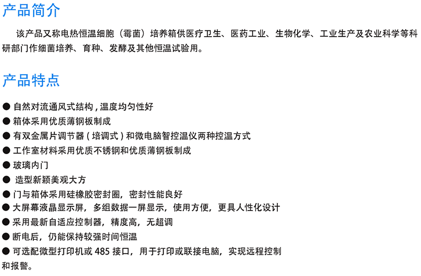 ●實時檢測培養箱的供電狀況,當發生斷電和失電時,立即會發出聲光報警信號,使培養箱安全、可靠運行不發生意外。