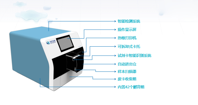 2.采用全封閉操作系統(tǒng),自動完成吸樣、加樣、洗滌、反應和檢測過程。檢測過程中操作人員不接觸試劑、標本和緩沖液等,生物安全性更高;