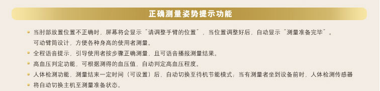 5、產(chǎn)品特點 1. 80%零部件從日本進口,國內(nèi)組裝; 2. 性能穩(wěn)定,重復(fù)性好,采用示波法測量,測量精準; 3. 通信數(shù)據(jù)輸出口:標準RS-232接口,連接電腦同步管理; 4. 臂套式測量,普通話語音輔導(dǎo),操作輕松簡單; 5. 內(nèi)置熱敏式打印機,自動打印測量結(jié)果,自動裁紙; 6. 測量迅速,40秒/人次; 7. 可自動記錄使用次數(shù),以便掌握使用狀況; 8. 在不關(guān)機的情況下,可列印出最近100次的歷史測量血壓值; 9. 可在mmHg/kPa兩種單位之間任意切換; 10. 顯示屏單屏顯示,可設(shè)置在前或在后(市場上唯一),滿足不同的客戶需要; 11. 可根據(jù)客戶需要,外接投幣箱; 12.本公司由日商獨資、專業(yè)大型血壓計生產(chǎn)廠家,已通過ISO9001: 2000和ISO13485: 2003認證; 13. 售后服務(wù):資深專業(yè)工程師,自產(chǎn)品售出之日起,提供壹年免費保修,終身維修; 14. 生產(chǎn)企業(yè)許可證,醫(yī)療器械注冊證,制造計量器具許可證三證齊全。 生產(chǎn)企業(yè)許可證號:粵食藥監(jiān)械生產(chǎn)許20071416號 醫(yī)療器械注冊證號:粵食藥監(jiān)械(準)字2007第2220272號 制造計量器具許可證號:粵制03000273號 6、標準配置 1) MEISEI-BPM SP-1全自動電子血壓計1臺(含電源線); 2) 血壓計專用袖套布2只(其中一只已安裝在機器上); 3) 托手架2個; 4) 打印紙5卷; 5) 防塵罩1個; 6) 中文使用說明書1本; |