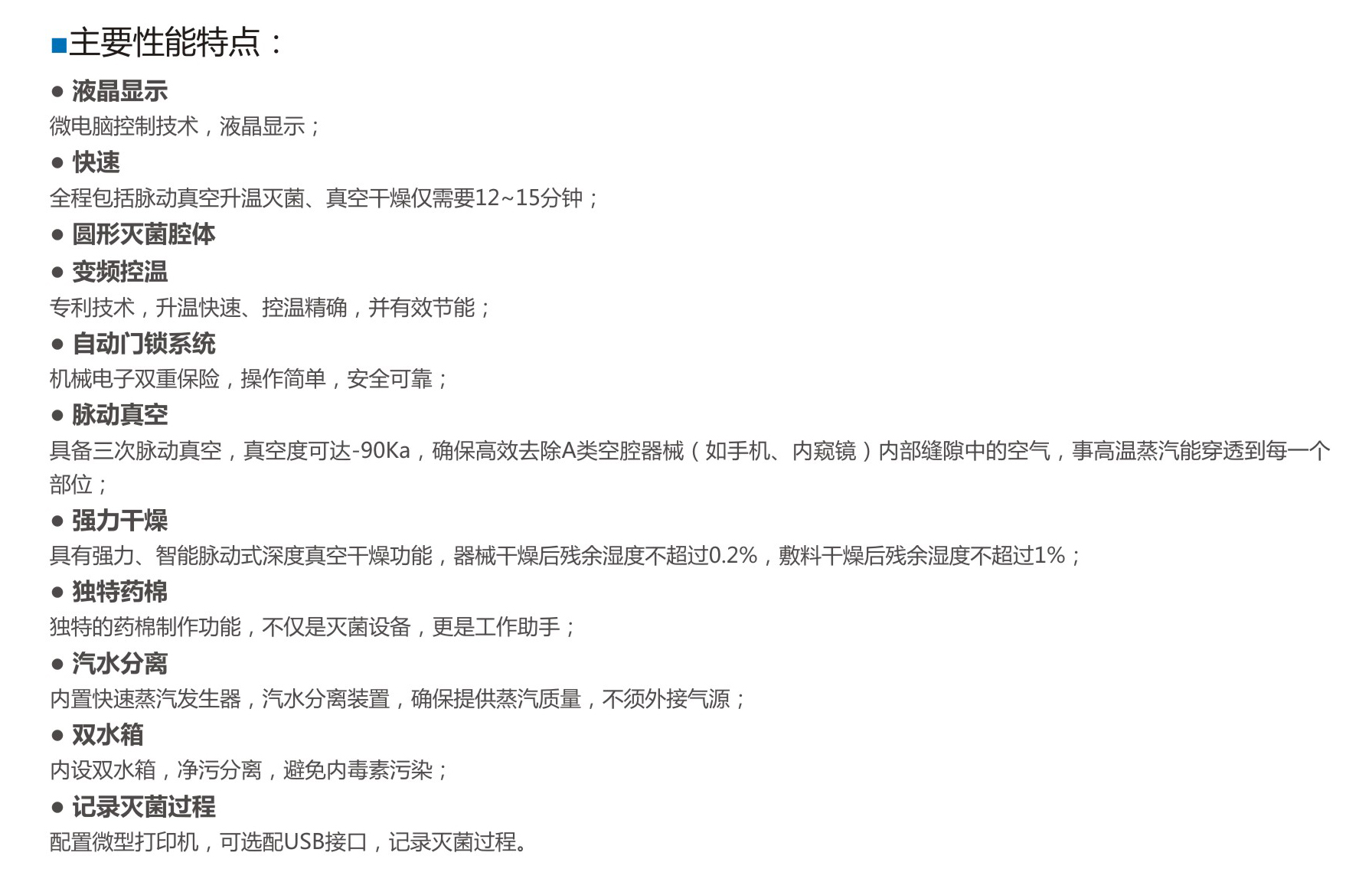 【U盤存儲功能】盤容量≥8G,能夠存儲記錄≥100萬次滅菌數據,存儲信息包括程序序號、滅菌日期、滅菌鍋次、滅菌起始結束時間和滅菌過程的壓力、溫度、階段時間和結束狀態等信息,并提供微機打印樣品。