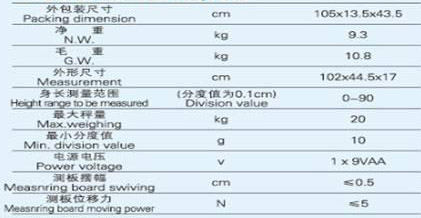 left?Wn-0Axg?.0000pt; vertical-align:; background:rgb(255,255,255); " >測高范圍:60cm-200cm 分度值:0.5cm稱重范圍:8kg-200kg  分度值:0.1kg