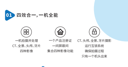 2:通過獨立的CMOS探測器直接進行二維全景片的拍攝,圖像質量好,免去拆卸的的麻煩。一板多用,簡單方便。