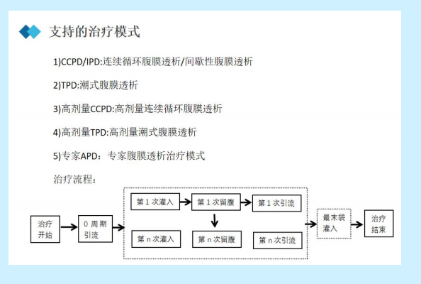 液晶觸摸屏幕,方便識讀 具有開放式設置功能的操作系統 腹膜透析管路一次連接,減少感染風險 設備操作簡單易學 24小時技術支持