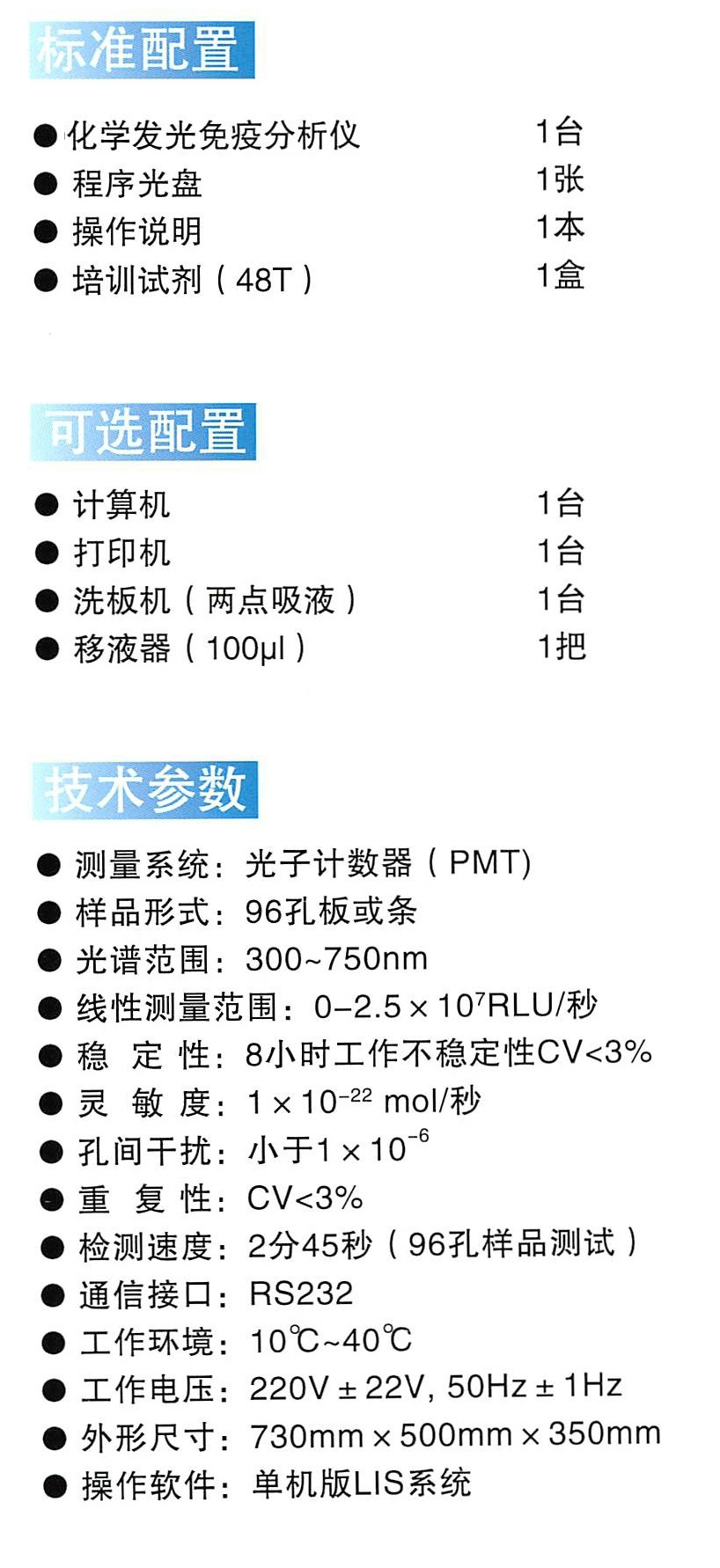 名稱:Maglia 60 化學發光免疫分析儀(國內領先管式發光技術,其它產品均板式發光技術)