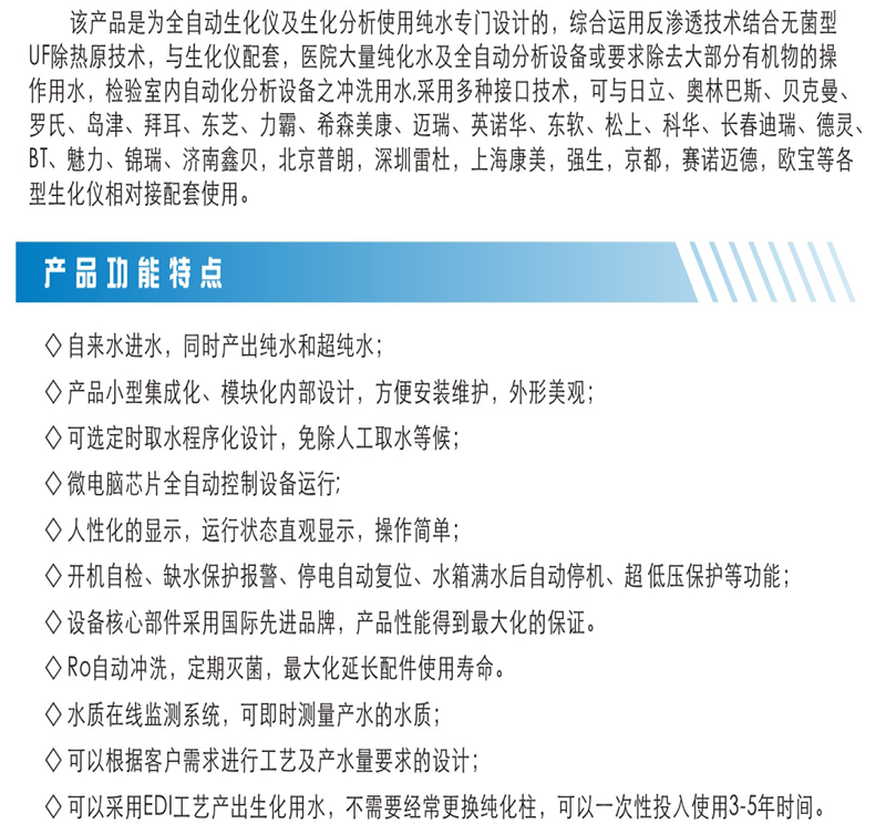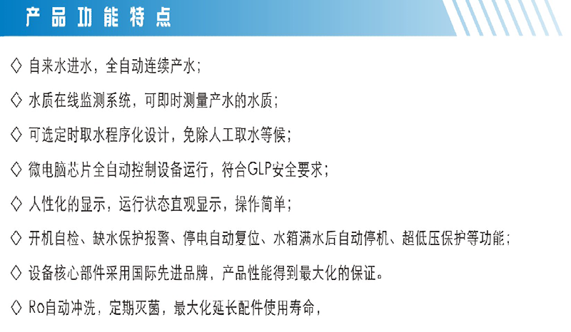 4.微電腦控制設備自動制超純水,超純水水滿自動停機,低水位自動補水;