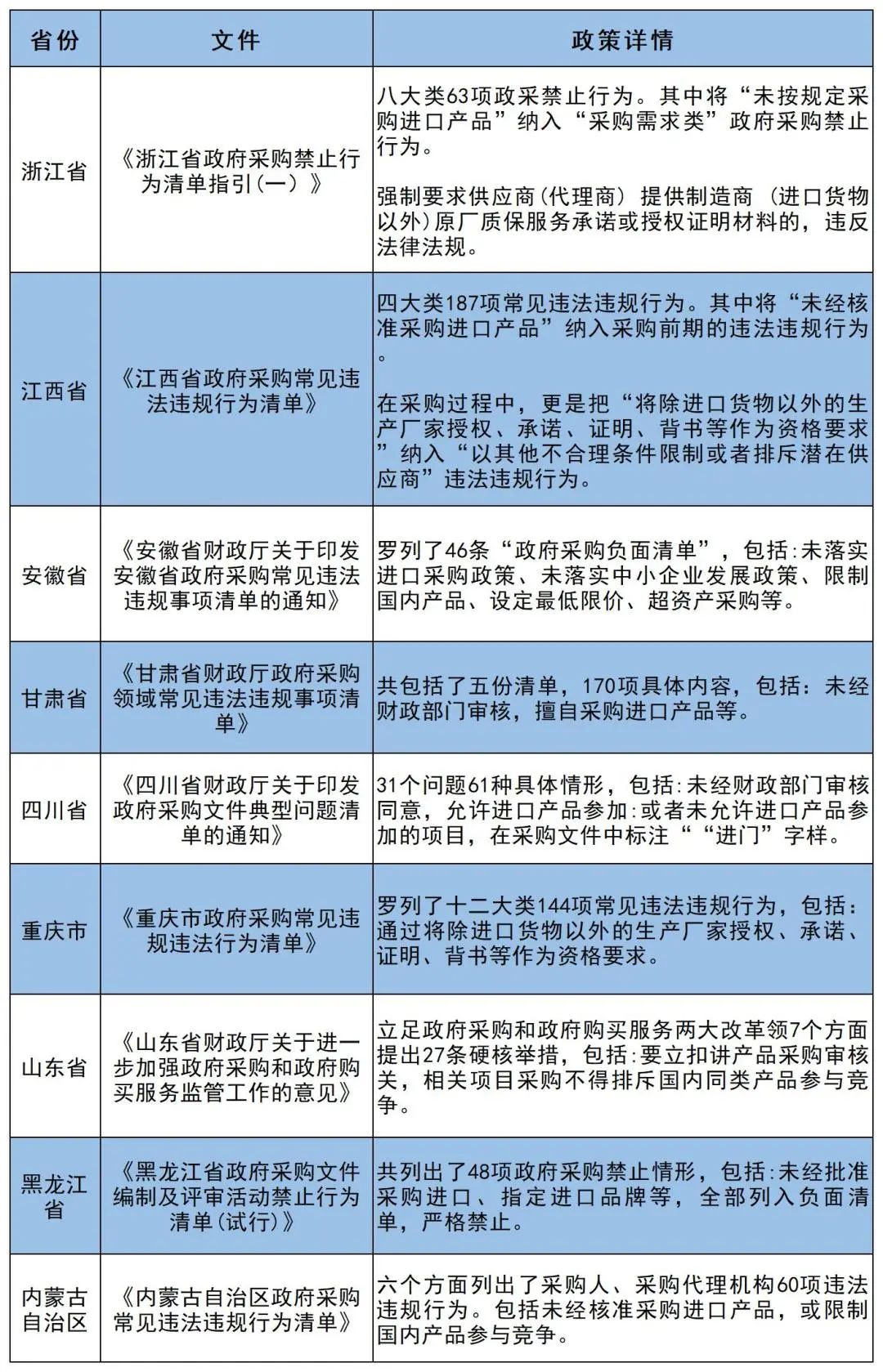 截至目前,浙江、安徽、江西等全國多省已相繼發布通知,把限制國產設備采購,納入負面清單,著重強調政府采購應當采購本國產品。一場席卷全國的進口設備采購限制風暴拉開帷幕。