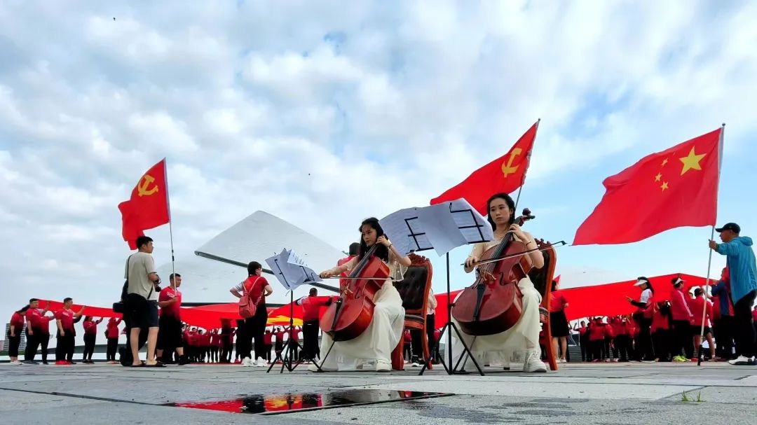 伴隨著雄壯激昂的《沒有共產黨就沒有新中國》,大家以飽滿的熱情和昂揚的姿態齊聲高唱,以此抒發對偉大祖國的熱愛之情,抒發著愛戴黨、擁護黨、堅定不移聽黨話、矢志不渝跟黨走的內心情感。