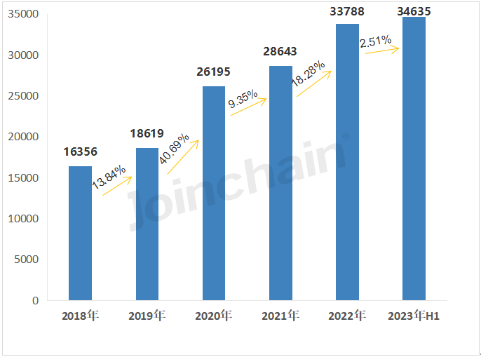 據統計,2023年上半年,全國醫療器械生產企業數量持續增長,截至2023年6月底,全國醫療器械生產企業達34635家,與去年同期相比增長18.45%,新增5394家,較2022年底(33788家)增長2.51%。
