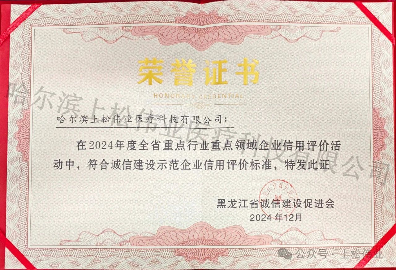 哈爾濱上松偉業(yè)醫(yī)療科技有限公司榮獲誠信企業(yè)稱號(hào),是對(duì)其誠信經(jīng)營和誠信工作的高度認(rèn)可?。這一榮譽(yù)不僅肯定了公司過去的努力,更為其未來發(fā)展提供了動(dòng)力。上松偉業(yè)醫(yī)療自成立以來,始終將誠信作為企業(yè)的核心價(jià)值觀,貫穿于經(jīng)營管理的各個(gè)環(huán)節(jié)。公司堅(jiān)持誠實(shí)守信、公平公正的原則,與客戶和供應(yīng)商建立了良好的合作關(guān)系,贏得了客戶的認(rèn)可及信任。這種誠信經(jīng)營的理念,不僅讓公司在市場中樹立了良好的口碑,更為其在激烈競爭中脫穎而出奠定了基礎(chǔ)。未來,上松公司將繼續(xù)秉承誠信理念,以更高的標(biāo)準(zhǔn)、更嚴(yán)的要求規(guī)范自身行為,力求在黑龍江省誠信建設(shè)中樹立典范。
