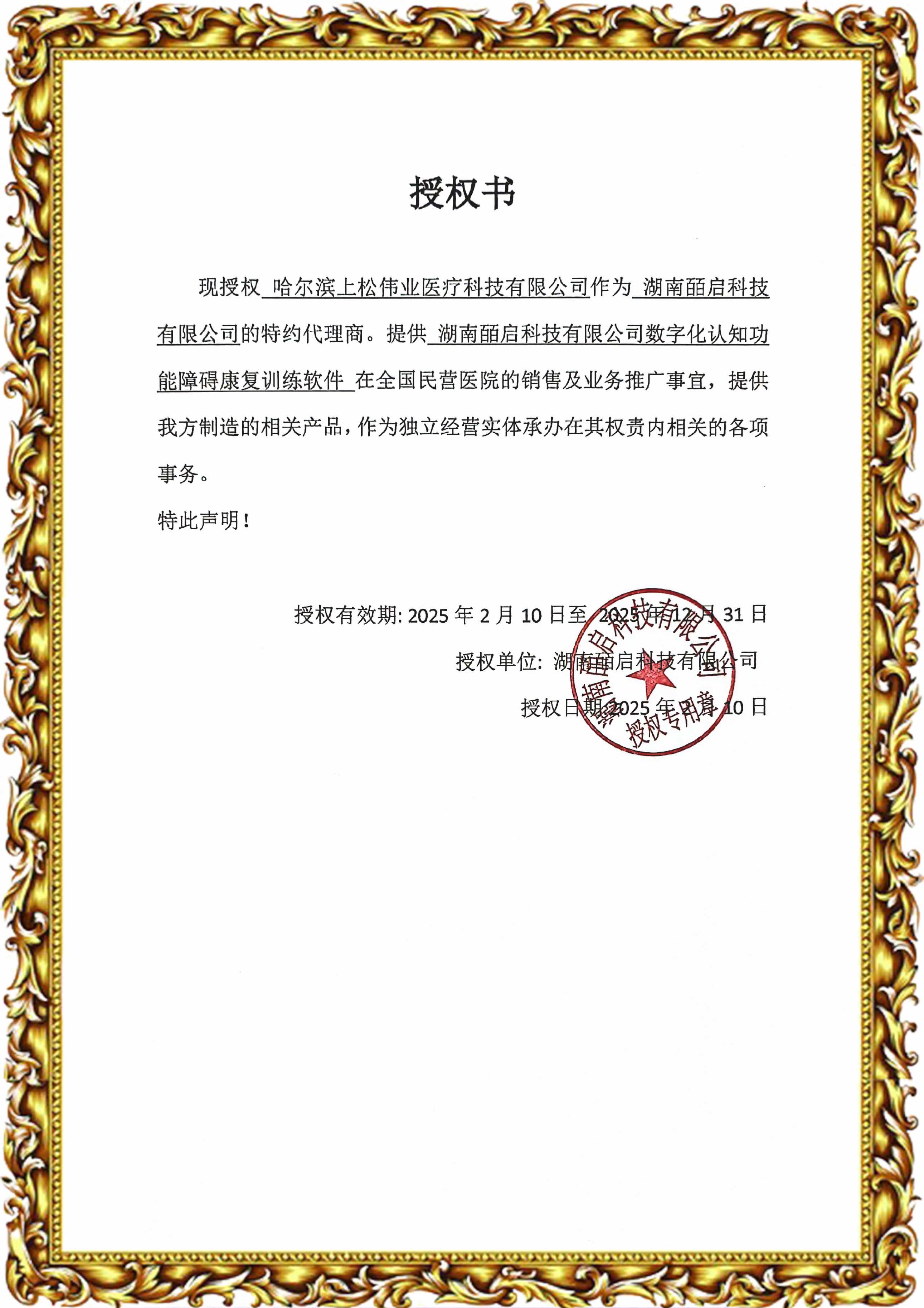 湖南皕啟科技有限公司授權(quán)書