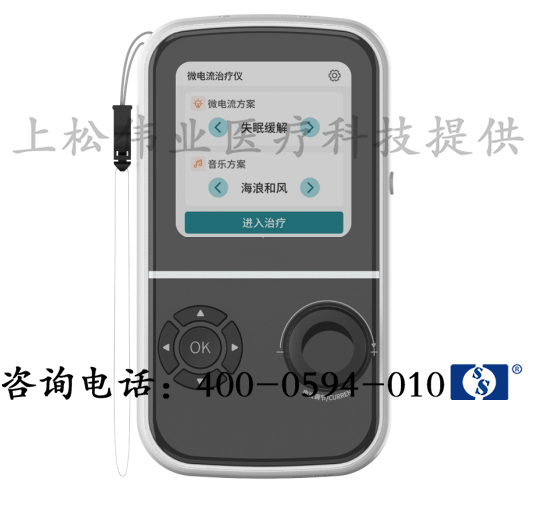 1. 微電流治療儀通過夾在耳垂上的一對電極向大腦中樞神經傳遞特殊波形的微電流,促使大腦分泌一系列與情緒等相關的神經遞質,改善異常腦電波,同時進行音樂治療,從而治療或改善失眠癥狀;