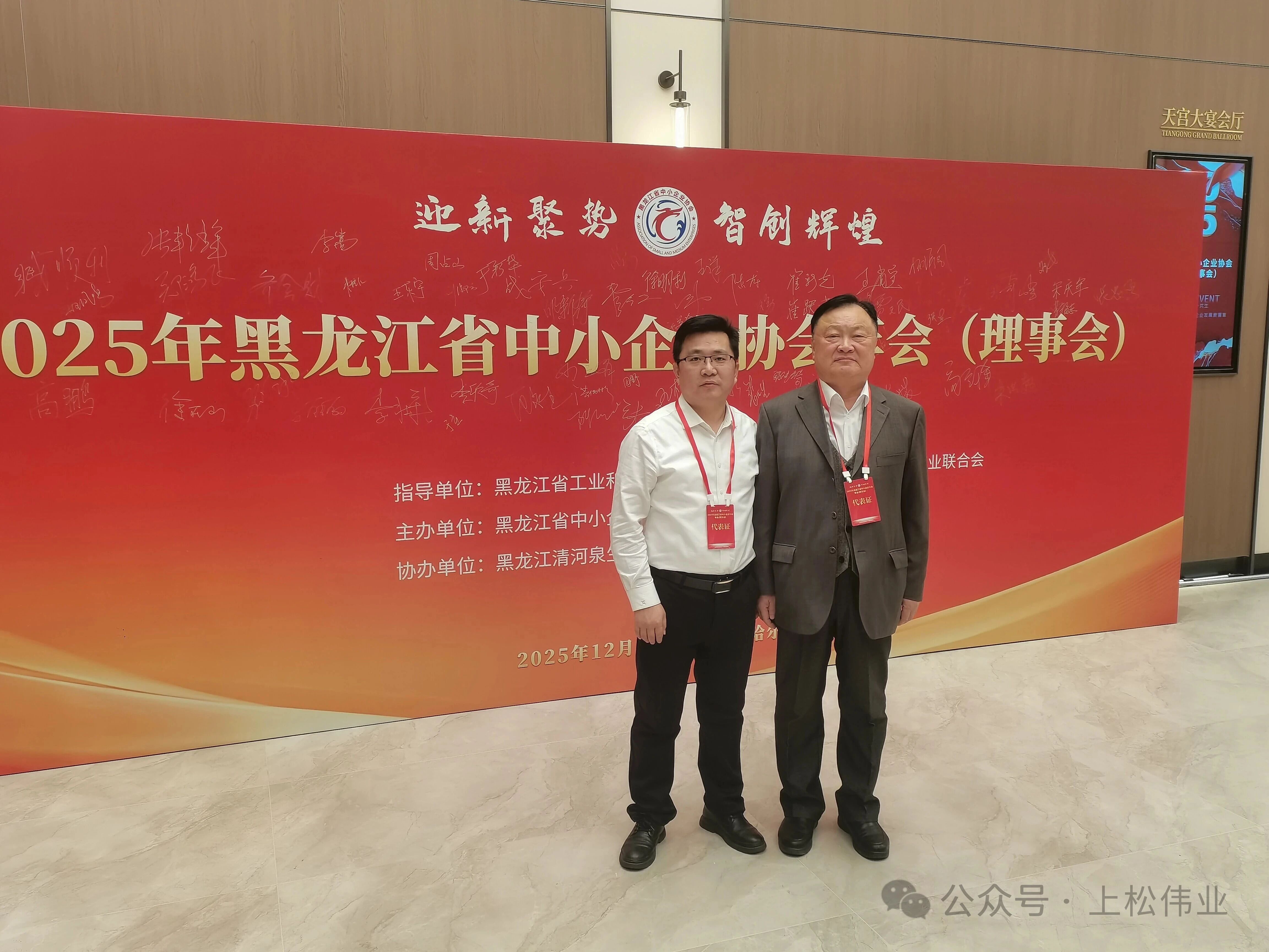 2025年12月17日,黑龍江省中小企業(yè)協(xié)會2025年年會(理事會)在哈爾濱冠洋世紀大酒店盛大啟幕。? 本次大會以“迎新聚勢 智創(chuàng)輝煌”為核心主題,匯聚省直相關部門領導、行業(yè)頂尖專家、標桿企業(yè)家及優(yōu)質服務機構代表,搭建起政策解讀、經(jīng)驗交流、資源對接的高端平臺。我公司總經(jīng)理陳國松、辦公室主任金慧婷受邀參會,與各界精英共話發(fā)展,為龍江中小企業(yè)高質量發(fā)展注入強勁動力,助力全省民營經(jīng)濟在振興征程上闊步前行。