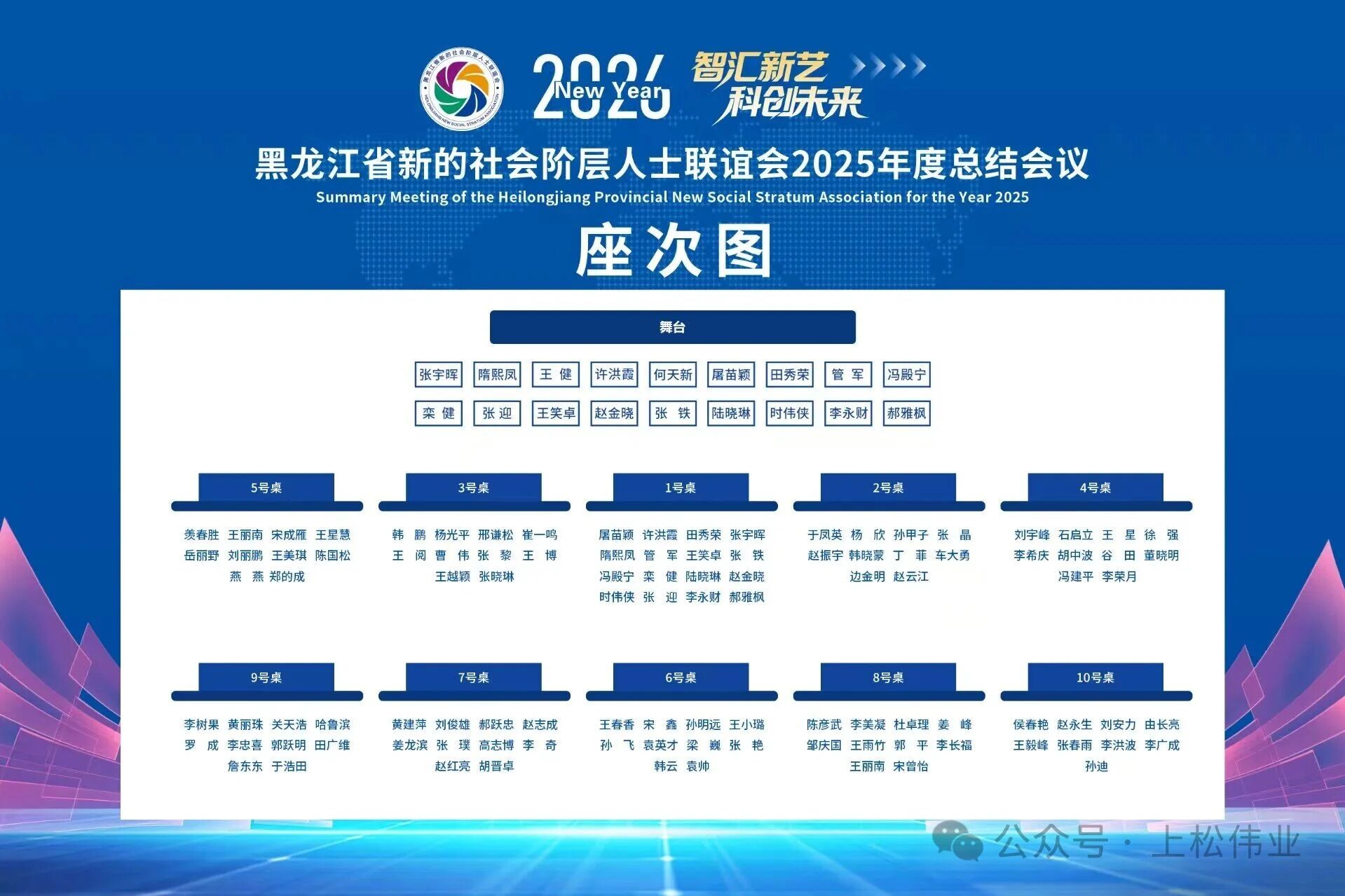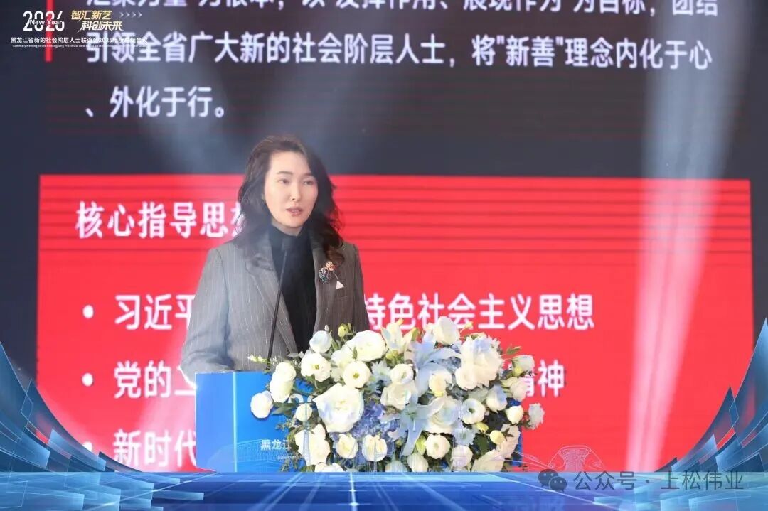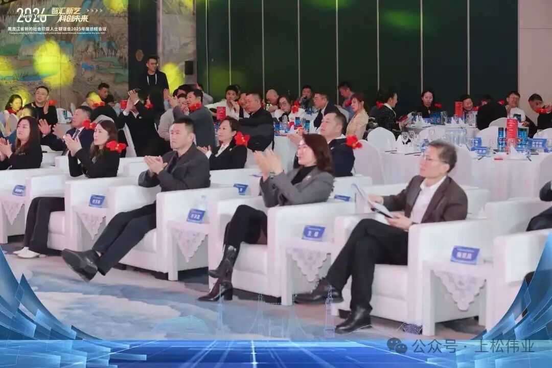 1月13日,“智匯新藝·科創未來”黑龍江省新的社會階層人士聯誼會2025年度總結會議暨“科創龍江”、“新藝龍江”品牌活動啟動儀式在哈爾濱隆重召開。本次會議旨在全面總結過去一年工作成果,擘畫未來嶄新藍圖,并正式啟動“科創龍江”“新藝龍江”兩大品牌項目,為龍江全面振興全方位振興凝聚新的社會階層人士智慧、貢獻新的社會階層人士力量。省委統戰部部務委員何天新、新的社會階層人士統戰工作處處長田秀榮,哈爾濱工業大學經濟與管理學院院長王健,全國“科創中國”組委會負責人屠苗穎,省新聯會黨委書記、會長許洪霞,常務副會長張宇暉,副會長隋熙鳳、欒健、張鐵、楊欣、陸曉琳、時偉俠、孫甲子、韓曉蒙、張迎、張黎,副會長、牡丹江新聯會會長馮殿寧,副會長、佳木斯市新聯會會長管軍,副會長、雞西市新聯會會長李永財,副會長、雙鴨山市新聯會會長郝雅楓,秘書長王越穎、我公司總經理陳國松以及各界嘉賓、全省各級新聯會代表共120余人齊聚一堂,共襄盛會。
