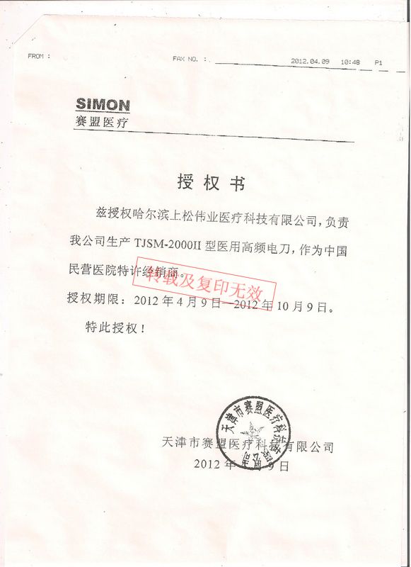 哈爾濱上松偉業(yè)醫(yī)療科技有限公司 傳真:0451-82280266 地址:黑龍江省哈爾濱市南崗區(qū)紅旗大街170號(hào)海格孵化基地8層