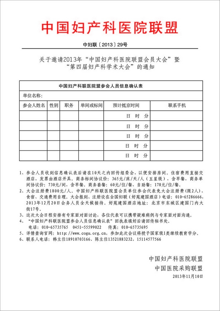 關于邀請2013年“中國婦產科醫院聯盟會員大會”暨 “第四屆婦產科學術大會”的通知