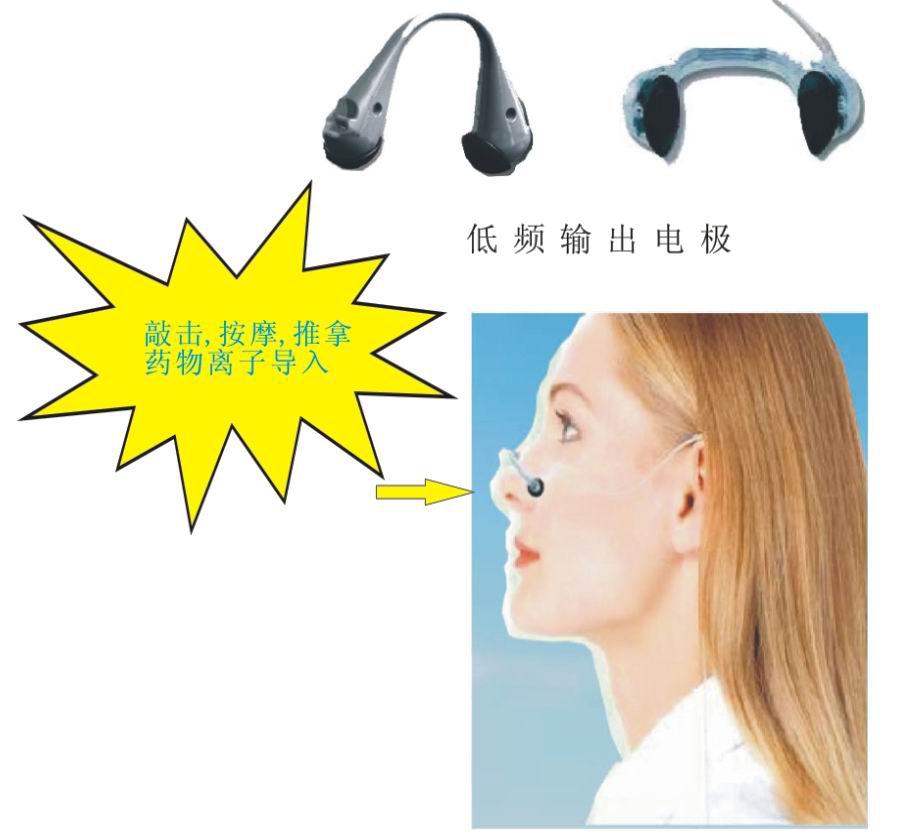 (三)超低頻數(shù)控糅合多種輸出波形的電脈沖刺激鼻兩側(cè)迎香穴,藥物離子導(dǎo)入經(jīng)典療法。