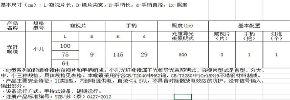 小兒光纖喉鏡技術參數