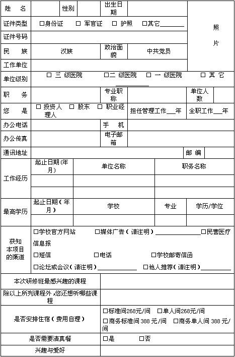第2期北京大學醫學部民營醫院管理EMBA研修班報名表