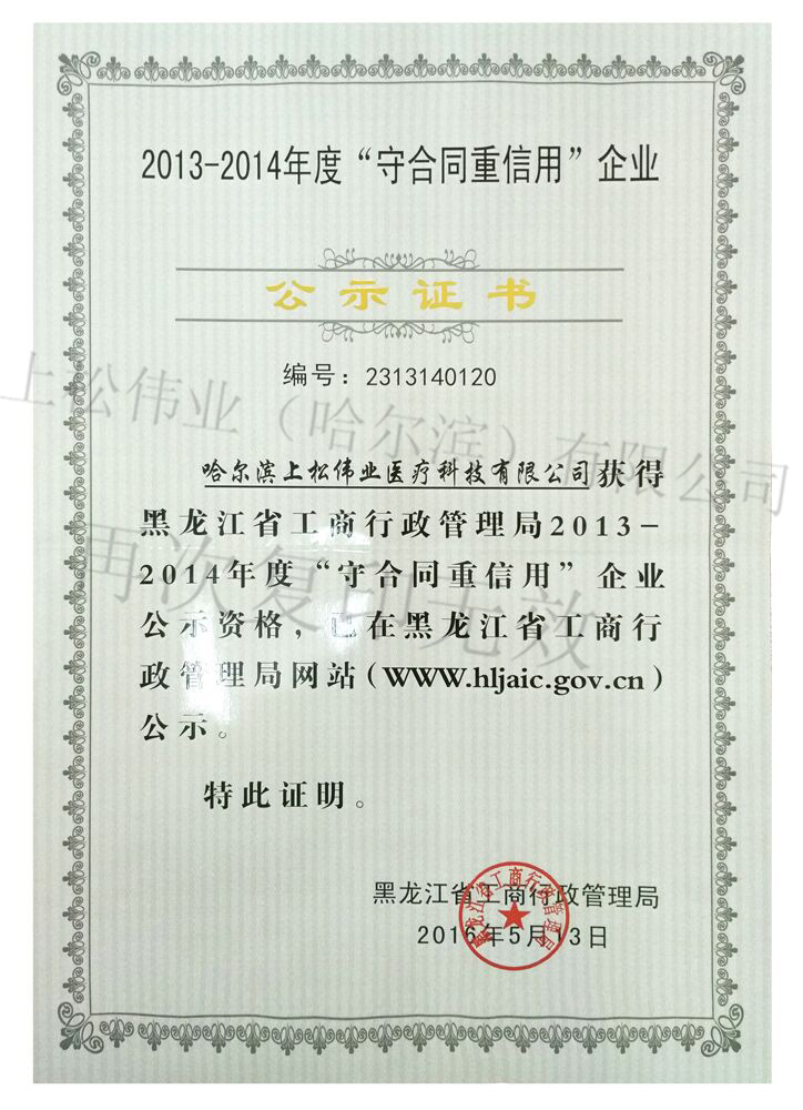 省級守合同重信用企業