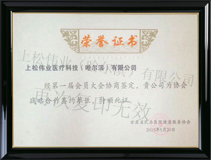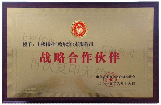 被黑龍江省民營醫療健康服務協會授予“戰略合作單位”稱號