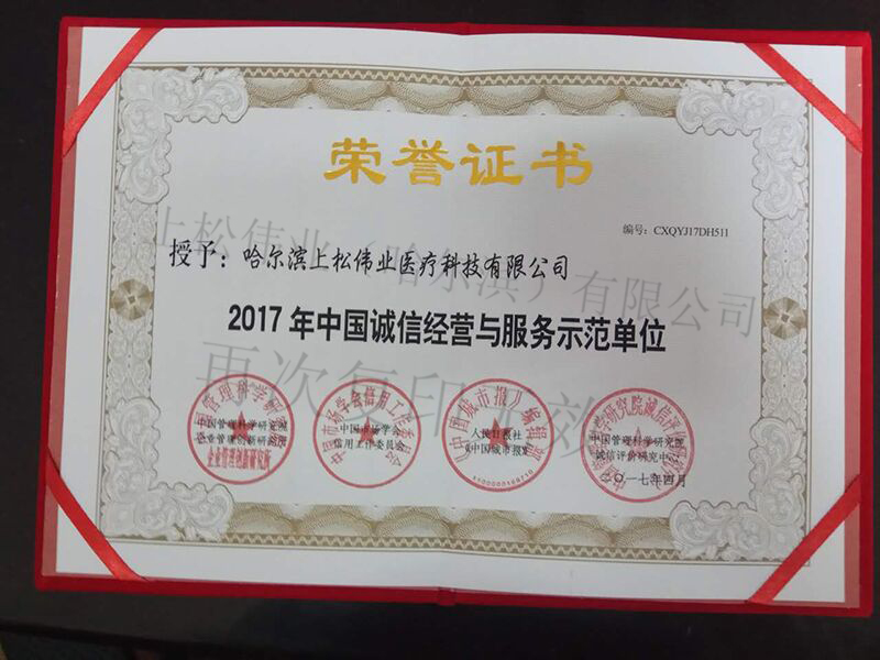 2017年中國誠信經營與服務示范單位