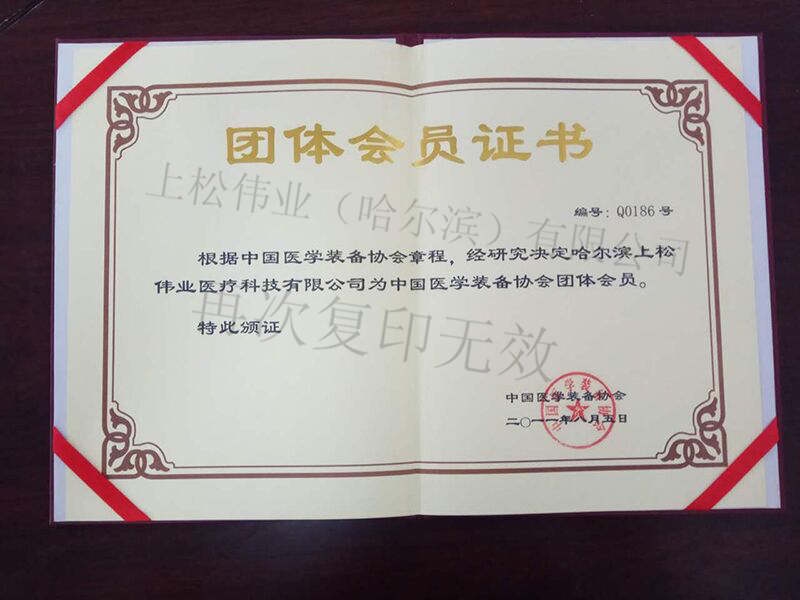 中國醫學裝備協會團體會員證書