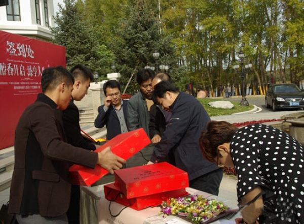 為商會(huì)成員贈(zèng)送禮品現(xiàn)場