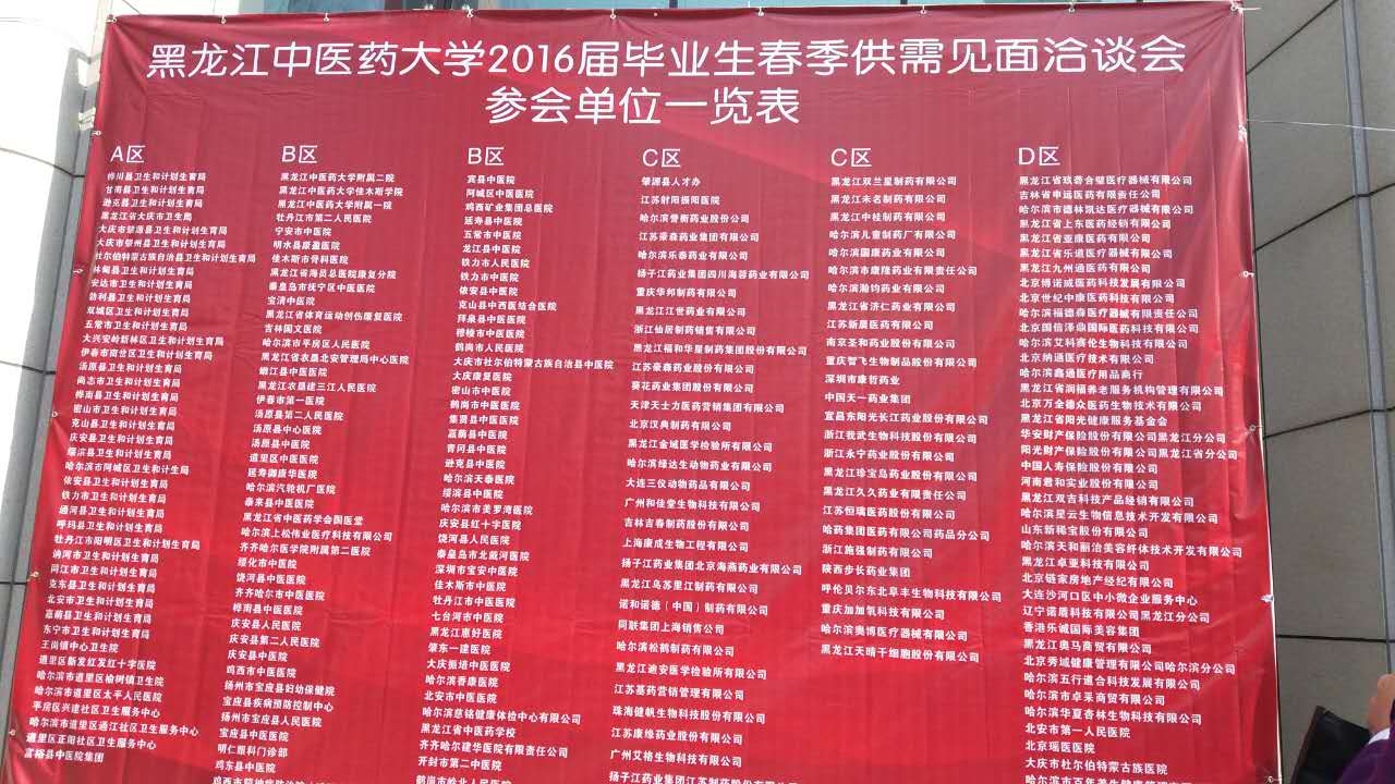 2016年3月26日,黑龍江省人社廳教育廳2016年春季公開招聘醫學院畢業生專場招聘會在黑龍江中醫藥大學舉辦,上松偉業醫療科技(哈爾濱)有限公司作為本地知名企業,受邀參加本次招聘會。公司在不斷培養創新型人才,加大公司人才儲備。同時,也不斷相應國家“雙向人才”戰略。爭取為大學生提供更多的就業機會,以此來回饋社會。