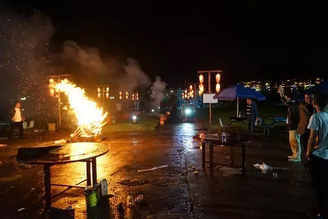 篝火的點燃讓整個現場的氣氛達到了高潮