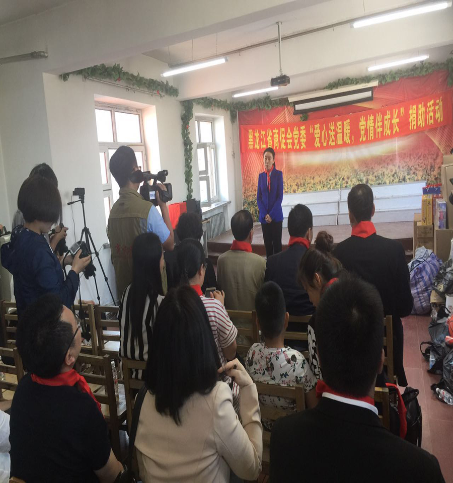 5月31日下午,為大力弘揚扶貧濟學互助友愛的傳統美德,營造人人心系少年兒童、人人關注貧困孩子的和諧氛圍。哈爾濱香坊區政府組織部,區教育局和黑龍江省商促會黨委攜手哈爾濱上松偉業醫療、60余名各界企業家來到黎明第九小學,舉辦“愛心送溫暖,黨情伴成長”捐助活動,為這里的貧困同學送去了學習用品和資金。