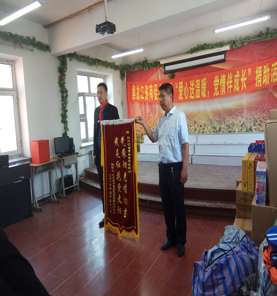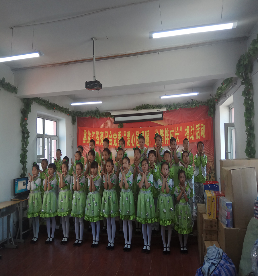 本次活動共捐助資金及物品十余萬元。香坊區黎明第九小學為捐款捐物的領導和愛心企業家們頒發了名譽校長和名譽班主任的聘任書,并為省商促會贈送了錦旗。為表達對省商促會以及愛心企業家的感激之情,香坊區黎明第九小學還表演了精心準備的文藝節目。