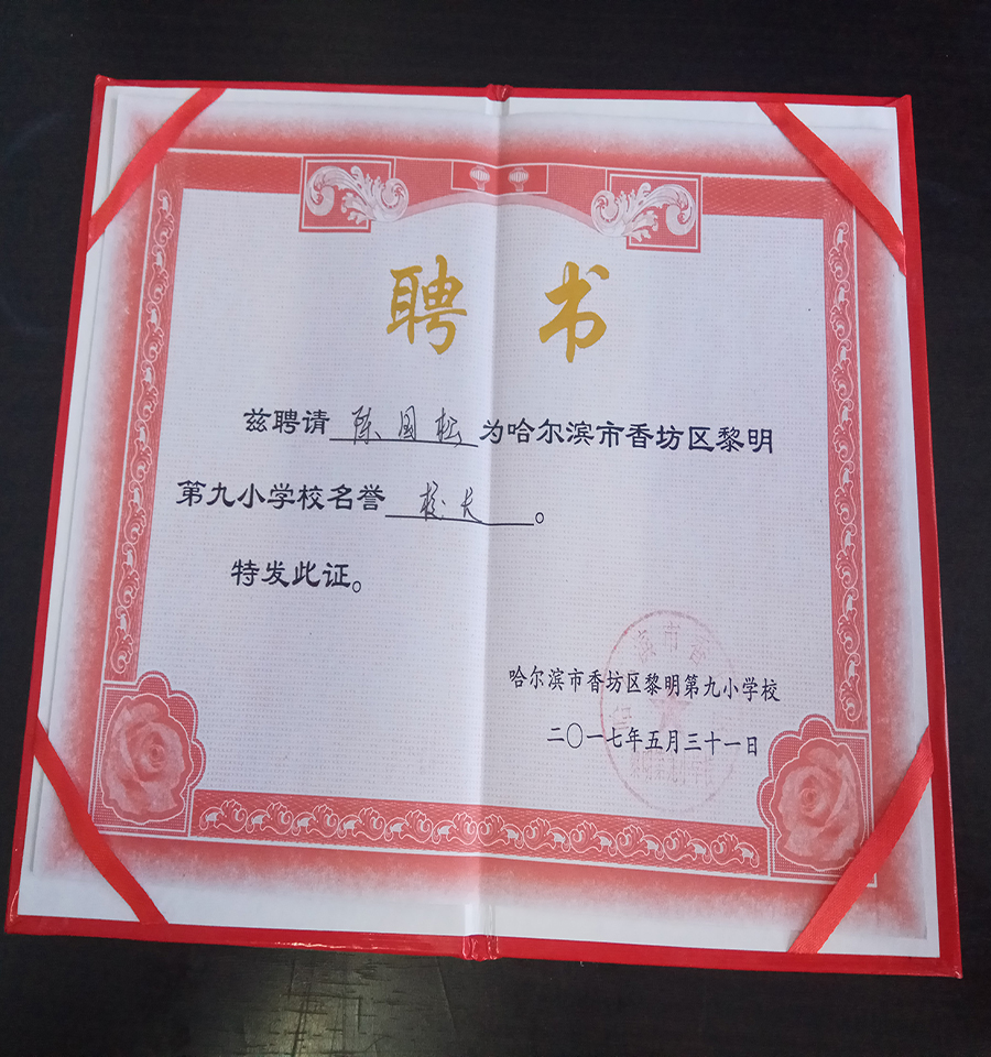 陳國松先生被聘請為香坊區黎明第九小學名譽校長