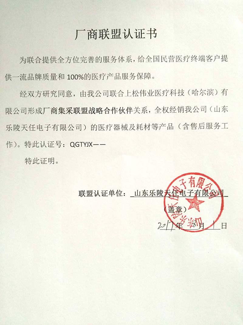 山東樂陵天任電子有限公司授權