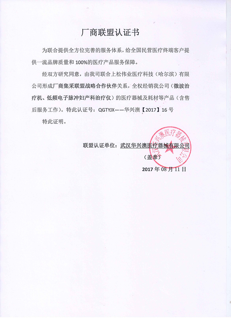 武漢華興奧醫療器械有限公司授權