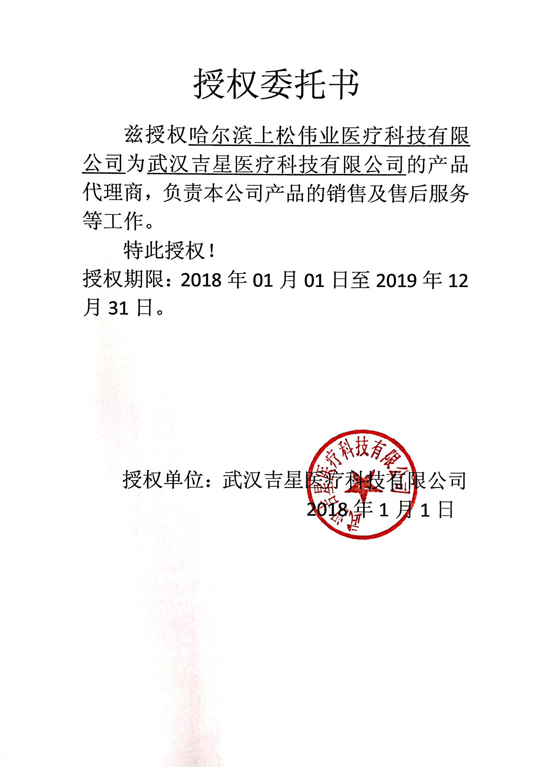 武漢吉星醫(yī)科科技有限公司授權(quán)