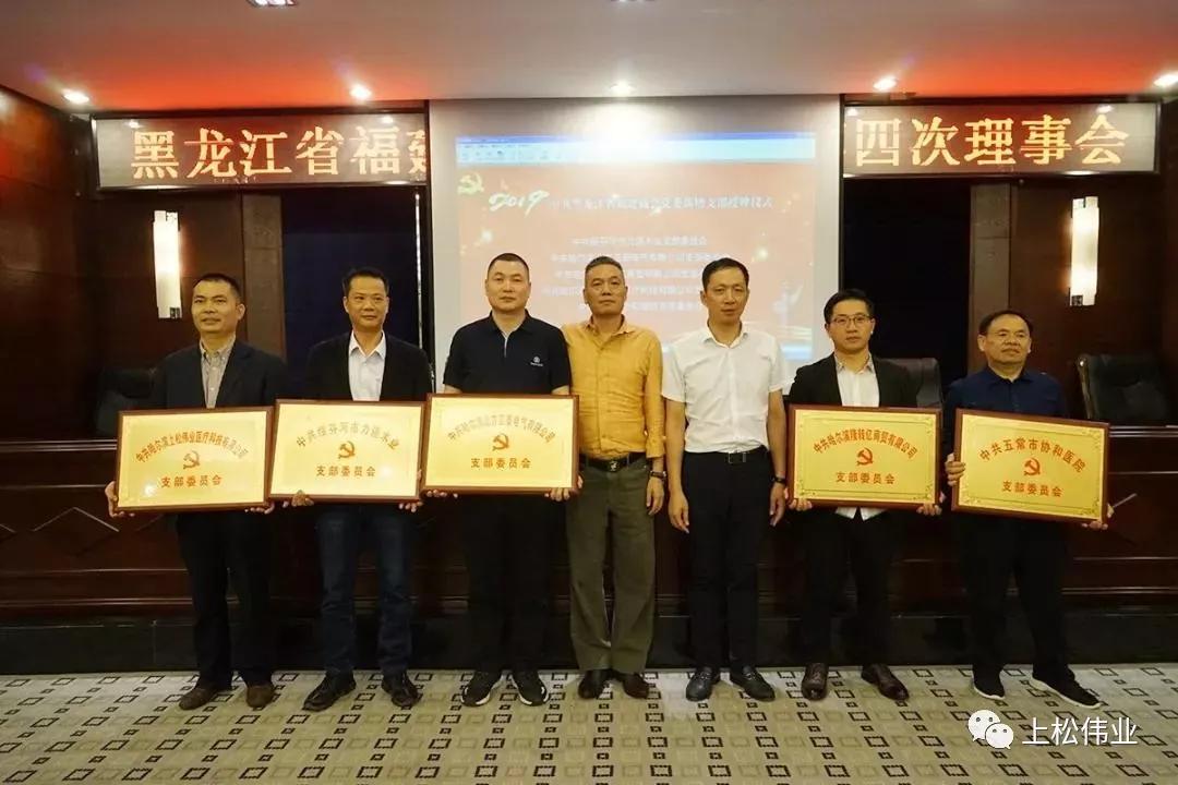吳慶和會長與吳光彥理事長為商會企業新成立黨支部授牌(左一為公司副總陳國洪)