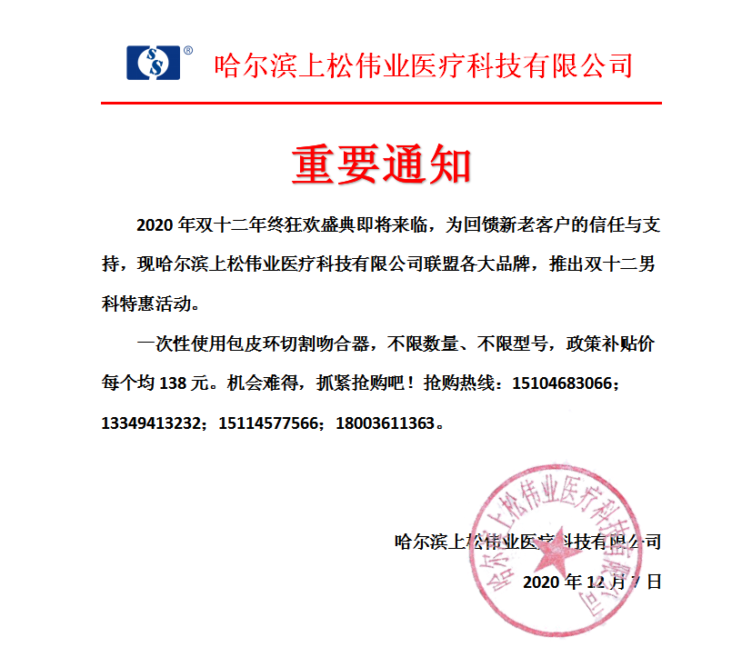 哈爾濱上松偉業醫療科技有限公司 傳真:0451-82280266 地址:黑龍江省哈爾濱市南崗區紅旗大街170號海格孵化基地8層