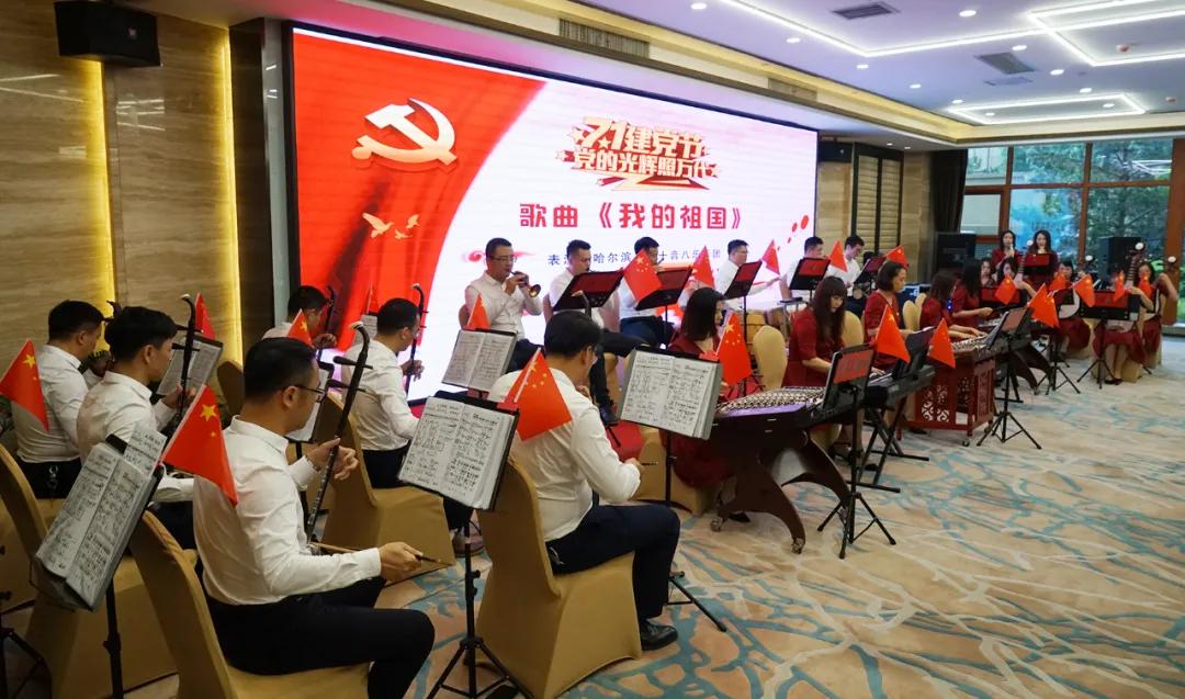 黑龍江省福建商會東南樂團(tuán)獻(xiàn)上紅歌演奏——《萬里長征》、《我的祖國》、《紅星照我去戰(zhàn)斗》,詠唱龍江閩商從八閩大地來到白山黑水間拼搏的情懷,表達(dá)對黨深深的感恩和祝福之情。