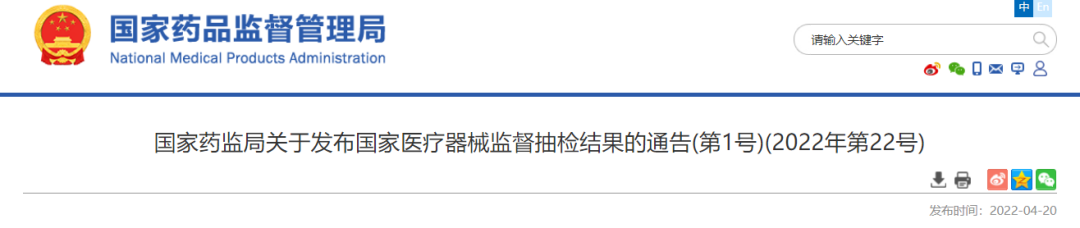 4月20日,國家藥監局發布了《國家醫療器械監督抽檢結果的通告(第1號)(2022年第22號)》(以下簡稱通知)。