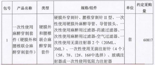 本次采購項目共7包,包括一次性麻醉穿刺套件(硬膜外和腰椎聯合麻醉穿刺套件)、橡膠檢查手套、PE檢查手套、一次性手術衣、醫用生物磁性敷貼(永磁愈合貼)、一次性使用產包、一次性使用手術包。