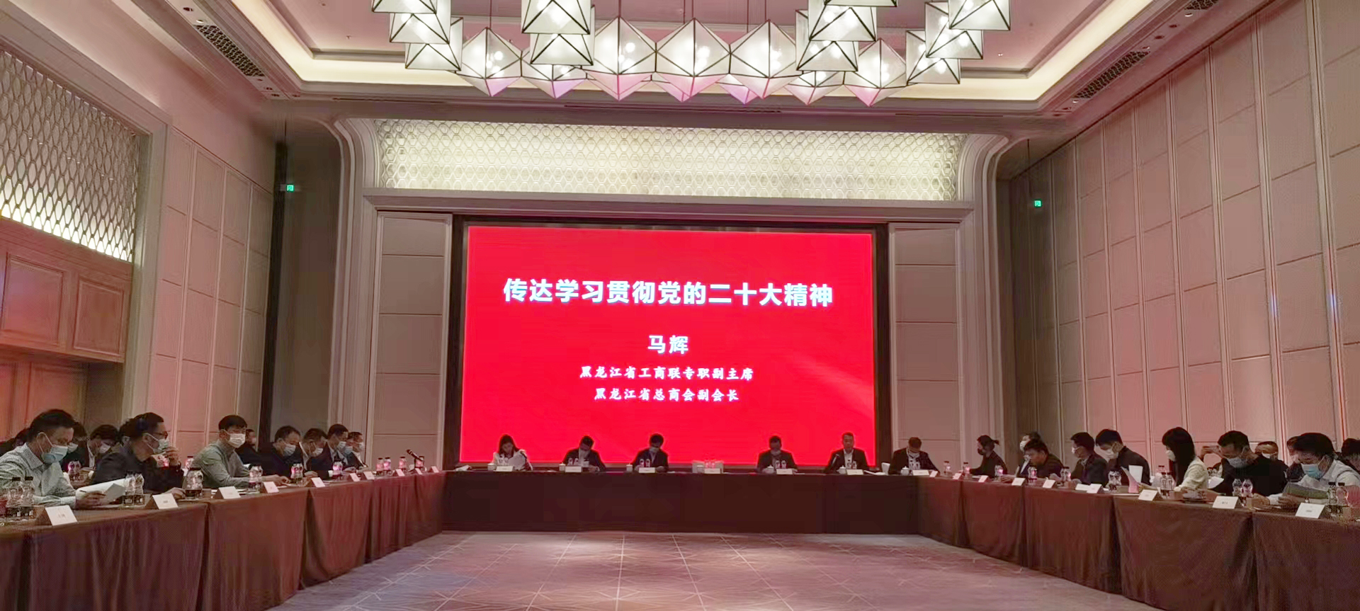 黑龍江省工商聯副主席馬輝向全體與會人員傳達二十大報告精神、黨章修正案精神、習近平總書記在參加廣西代表團討論時的重要講話精神、習近平總書記在黨的二十大閉幕會上的重要講話精神等主要內容。