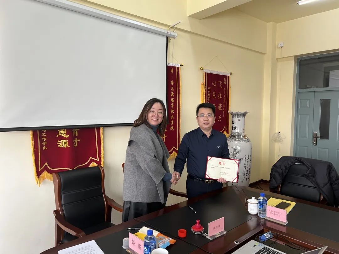 在會見交流中,到訪企業介紹了當前企業在黑龍江省產業布局與戰略規劃,感謝哈爾濱城市職業學院多年來為企業發展提供的技術、人才和智力支持,并對學校當前建設取得的進展和成效表示祝賀。希望雙方以此次簽約為契機,發揮各自優勢,建立長效機制,深化務實合作,進一步促進“產、學、研”發展,將雙方戰略合作協議做實、做細、做深,攜手打造新時代校企合作新模式。