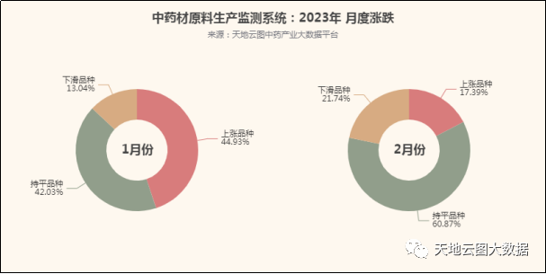 其中,上漲品種數量相比1月份下滑27.54%,持平品種和下滑品種相比數量1月份分別增長18.84%和8.70%。