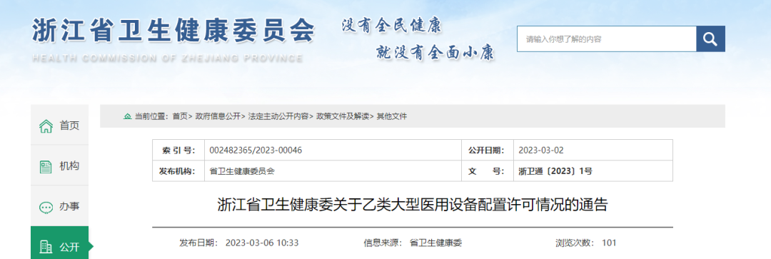 浙江省衛健委發文,大型醫療設備進院有變